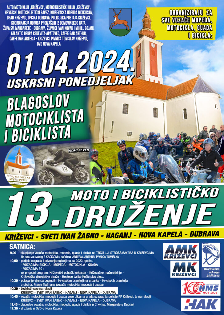 Na Uskrsni ponedjeljak, 1. travnja 2024. godine, s početkom u 9 sati održat će se 13. moto i biciklističko druženje za sve vozače mopeda, motocikla, quada i bicikala u organizaciji AMK „Križevci“, Grada Križevaca, Općine Dubrava i Policijske postaje Križevci. Domaćin druženja su Općina Dubrava i DVD Nova Kapela, a ugostit će više od 800 vozača.