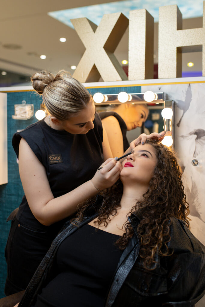 „Dakle nemojte da vam novogodišnja šminka bude opterećenje jer vrlo je jednostavno što odabrati. Imamo dvije varijante. Preporučamo ili varijantu isticanja usana, ili varijantu isticanja očiju. Ipak, novogodišnja noć trpi isticanje i jednog i drugog, što je trend trenutno popularnih osamdesetih. Svakako je dobro kombinirati nijanse s odjevnom kombinacijom, no ako se nose neutralne boje, make up podnosi bilo koju jarku boju. Mi smo pripremili make up look na temu osamdesetih, gdje smo pažnju dali nijansiranju očiju s više jarkih boja. Takav make up trpi i šarenu odjevnu kombinaciju kao i neutralne tonove bijele-crne-bež. Za drugu varijantu gdje ističemo usne, kombinirali smo crvenu liniju donjeg kapka sa zlatnim šljokicama. Ovakav make up je nešto decentniji, ali ipak jako moderan i trendy – kao moderna primjesa pin up klasiku“, ističe gospođa Tomić koja vam u svojim CHIX threading barovima, uz šminkanje, nudi i oblikovanje i uređivanje obrva, ali i uređivanje noktiju na rukama.