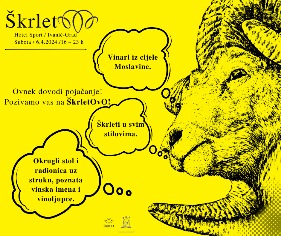 Rezervirajte subotu, 06. travnja, od 16 sati, za Hotel Sport u Ivanić-Gradu, gdje će se odvijati ova vinska čarolija. Organizatori događaja su Turistička zajednica Ivanić-Grada i Udruga škrlet Moslavina, a iza koordinacije projekta stoje vinska promotorica Ivana Pranjić i Janko Kezele, predsjednik Udruge.
