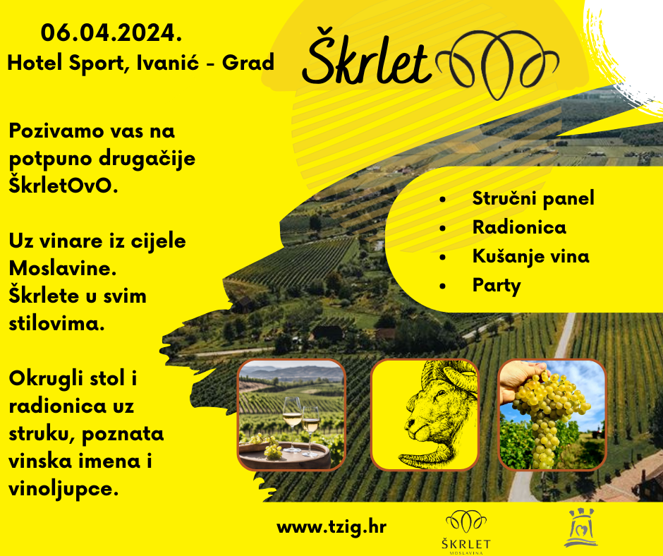 Manifestacija ŠkrletOvO, koja je prvi put održana 2018. godine, ima za cilj popularizaciju škrleta, jedinstvene sorte koja raste na moslavačkim brežuljcima. Ovogodišnje izdanje donosi spektakularan program uz sudjelovanje vinara iz cijele regije, koji će predstaviti širok spektar stilova ovog vina – od pjenušaca do mladih škrleta, maceriranih i kupažiranih varijanti te mnogo toga drugog.