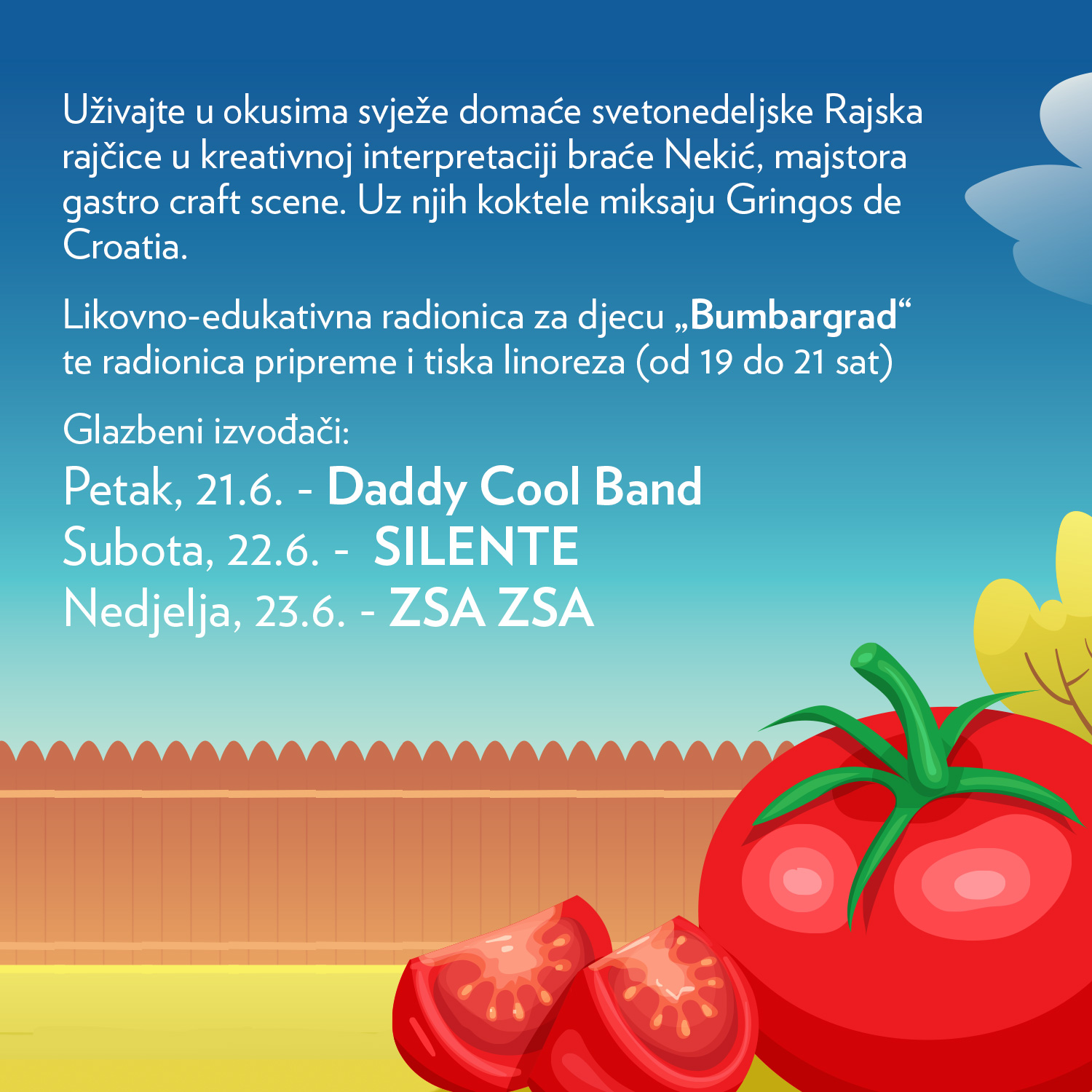 Program počinje od 19 sati, taman kad malo padne sunce da možete uživati u cijelom bogatom programu sad već tradicionalne proslave ljeta u Svetoj Nedelji. Paradajz from Paradise održava se u organizaciji Turističke zajednice Sveta Nedelja, a sve dodatne informacije pronađite na Facebooku i Instagramu Turističke zajednice Sveta Nedelja i Domenikane, kulturnog ljetnog programa kojeg je i Paradajz from Paradise dio. Vidimo se u Svetoj Nedelji!