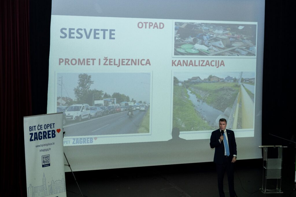 Nezavisni kandidat za gradonačelnika Zagreba, Trpimir Goluža, otvorio je sinoć terenski dio kampanje u Sesvetama. U punoj kino dvorani Narodnog sveučilišta Sesvete, Goluža je predstavio Sesvećanima svoj pobjednički sastav za Zagreb – GOLUŽINIH 11, ali i konkretna rješenja za ključne probleme Sesveta. Istaknuo je kako Sesvete imaju poseban značaj u njegovom privatnom životu, ali i političkom djelovanju, zbog čega je već nekoliko godina aktivno posvećen rješavanju ključnih izazova ove gradske četvrti.