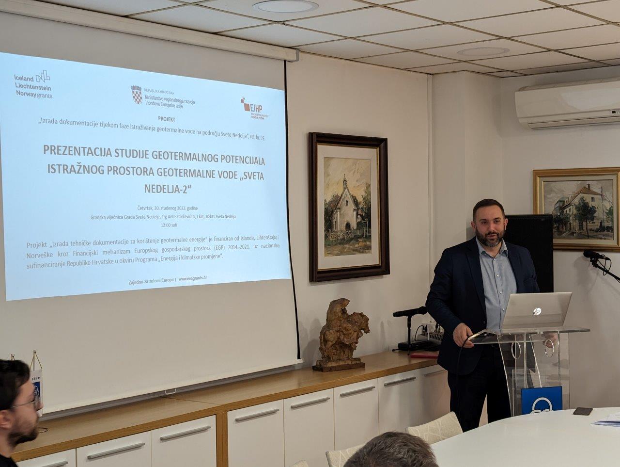 U sklopu projekta, kao dio pripreme, izrađena je „Studija geotermalnog potencijala istražnog prostora geotermalne vode „SVETA NEDELJA –2 čije se predstavljanje održalo 30. studenog 2023. godine. „Ovo je strateški projekt Grada s kojim pratimo korake u iskorištavanju obnovljivih izvora energije. Želimo razvijati sve ono što nam geotermali pružaju, a sve ovisi o istražnoj bušotini i njenim kapacitetima.“, rekao je Gabrijel Deak, zamjenik gradonačelnika Grada Svete Nedelje. „Ova tema izuzetno je aktualna jer se nalazimo u tranzitnom razdoblju prema zelenoj energiji i obnovljivim izvorima koji su jedni od prioriteta budućnosti. Svi zajedno moramo više krenuti u veće iskorištavanje geotermalnih potencijala u Hrvatskoj kao prirodnih bogatstva“, istaknuo je Deak. Dodao je kako bi se geotermalna energija iskorištavala u industrijskoj zoni, u području turizma i poljoprivrede, a dosadašnji podaci pokazuju da bi se primjena mogla u budućnosti širiti i na stambena naselja i na industriju.